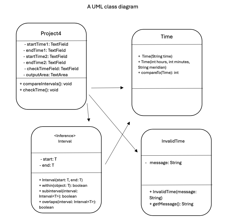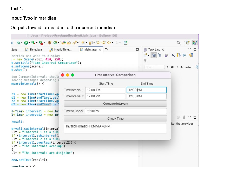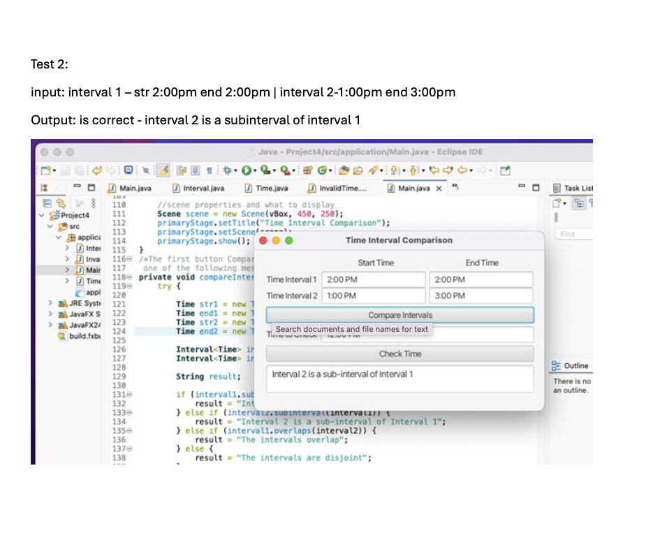 The first button CompareIntervals should compare the two intervals and output one of the following messages depending upon how the intervals compare